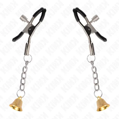 KINK – MORSETTI PER CAPEZZOLI CON CIONDOLO CAMPANELLA IN ARGENTO 6 CM